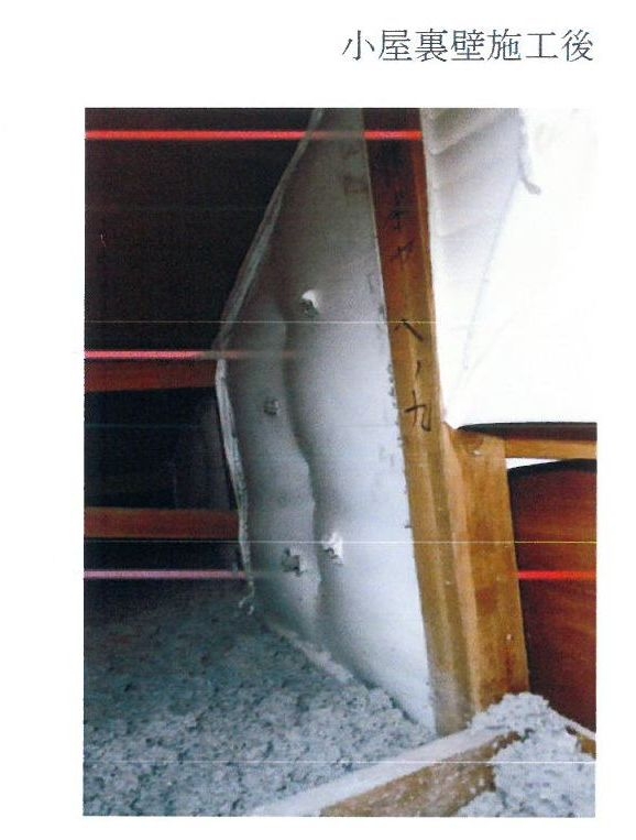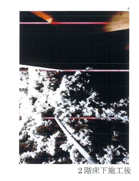 この建物は平成2年新築の建物でしたが、天井と床下には断熱材の充填がなく壁のみ断熱材が入っていました。