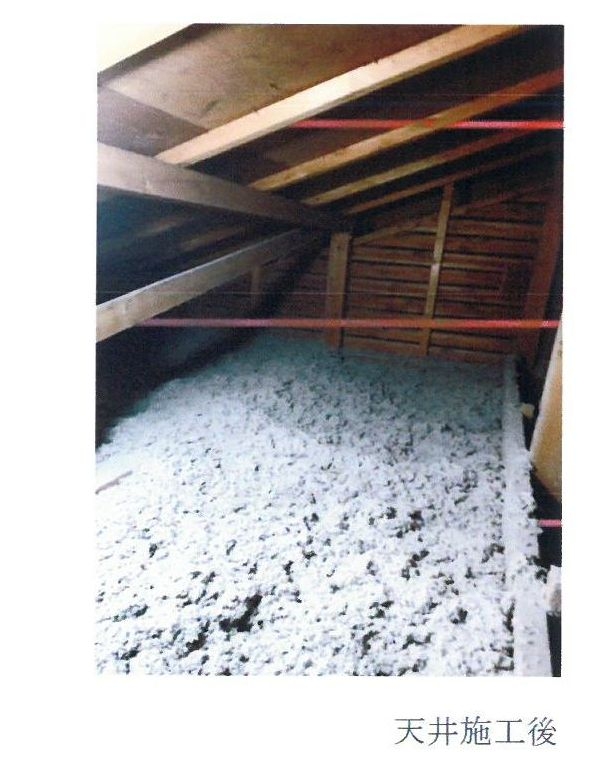 1階床下がシートを張って100ミリ、1階天井200ミリブローイング、小屋裏が一部ロフトして使用していたためロフト部分はシートを張って屋根に200ミリ充填その他のは200ミリブローイングしました。