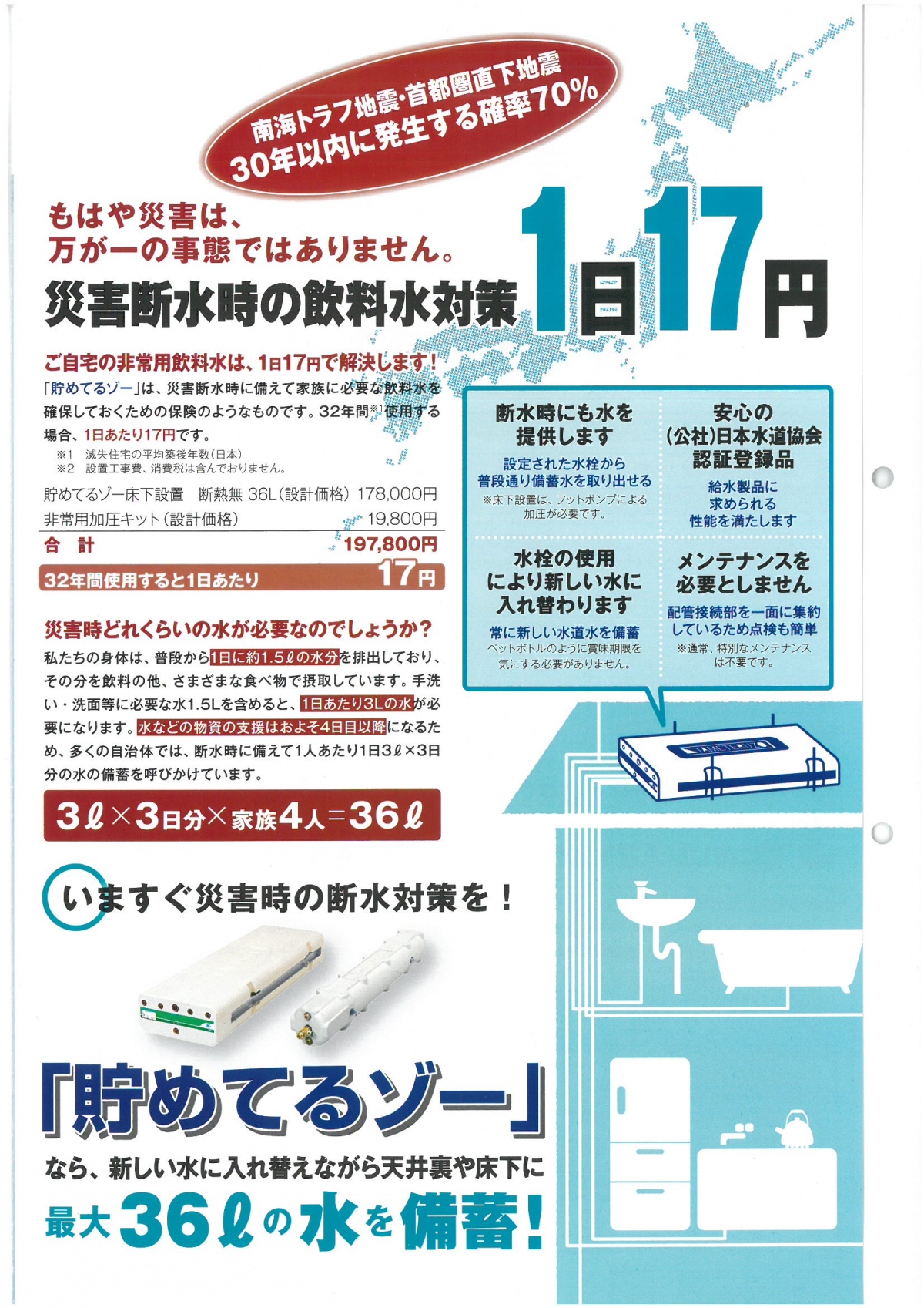 その時に最大36ℓ新しい水に入れ替えながら備蓄できる設備です。