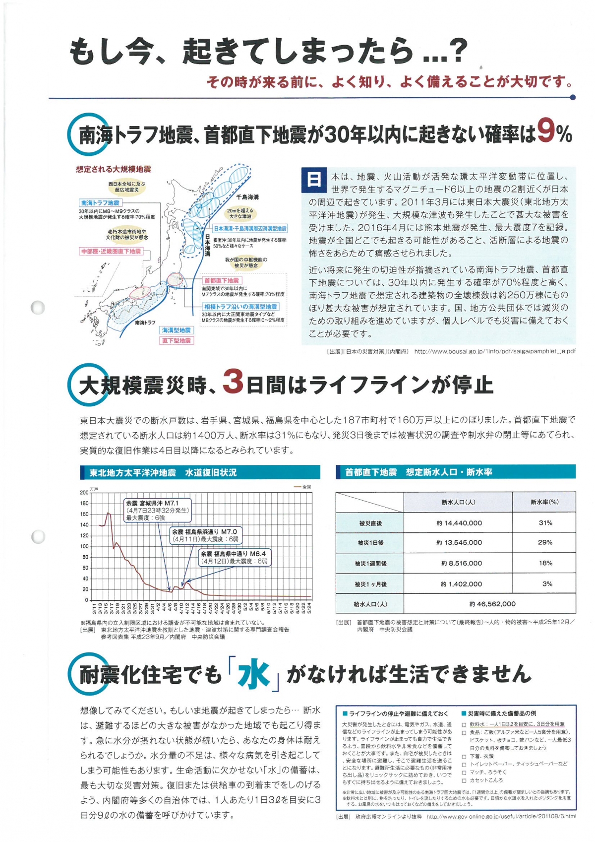 災害時に停電と主に断水になることも多いですね。