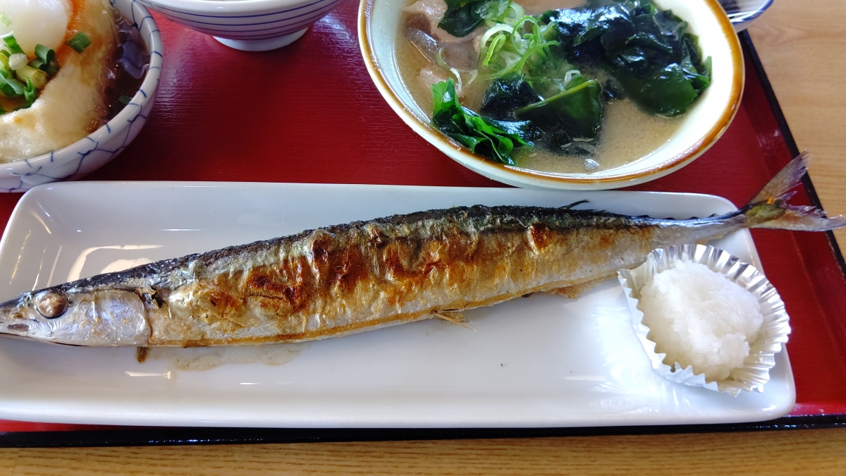 >写真はまいどおおきに食堂で食べたサンマです。