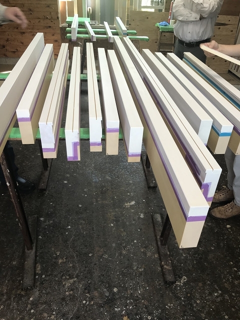 木材の乾燥から集成、加工、塗装、組み立てまで一貫生産で作っています。