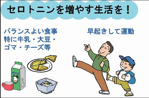 られます。セロトニンからメラトニンへの合成は暗くなると始まると言われています。